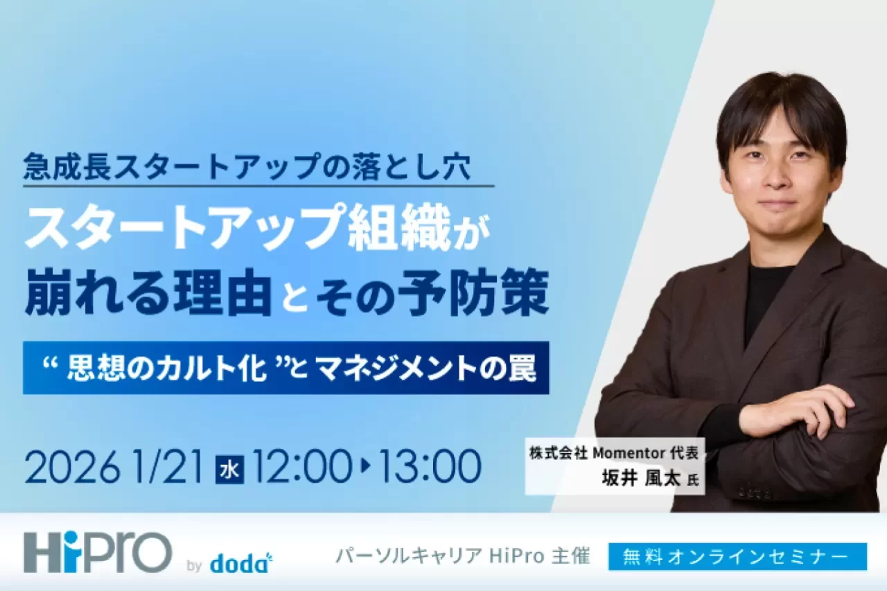 本セミナーでは、組織開発や人材マネジメントの領域で豊富な知見を持つ坂井風太氏をお招きし、 スタートアップ組織が崩壊してしまう理由とその予防策について、実例と理論を交えてご講演いただきます。