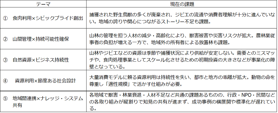 本プログラムでは、山を起点にした事業創出の可能性を、以下のテーマに基づき検討します。