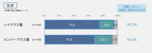 高いスキルを持つハイクラス層であっても、理想と現実のギャップに直面するケースは決して少なくないことがわかります。この結果から、副業を始める前に失敗のパターンを学ぶことの重要性だと言えるでしょう。