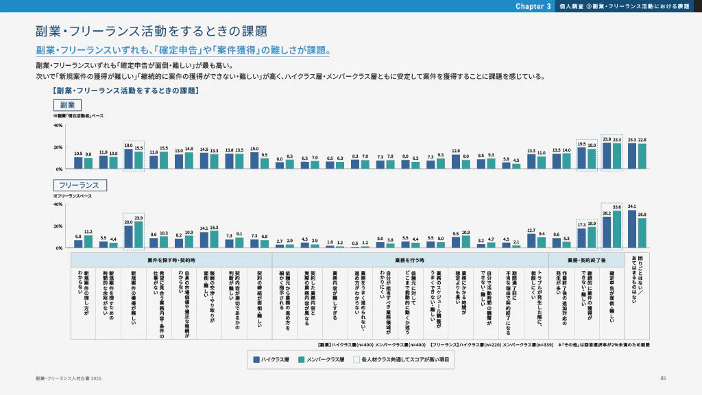 副業人材のマッチングサービス「HiPro」が発表した「副業・フリーランス人材白書2025」によると、副業を行うハイクラス層※のうち14.5%が「報酬の交渉・やり取りが面倒・難しい」と回答しています。